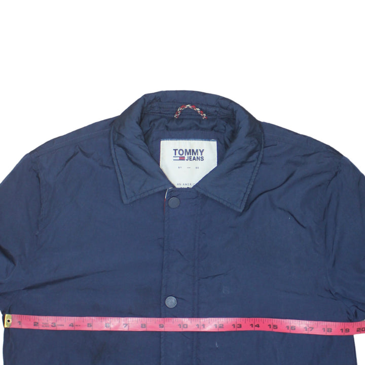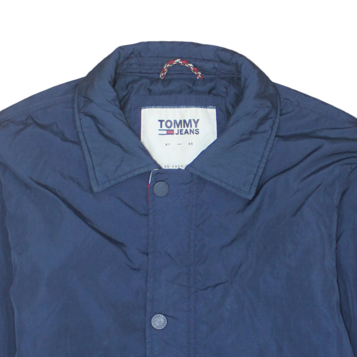 Tommy Jeans Navy Blue Windbreaker Jacket Men's Small Sleeve Flag Logo Snap Front Outerwear