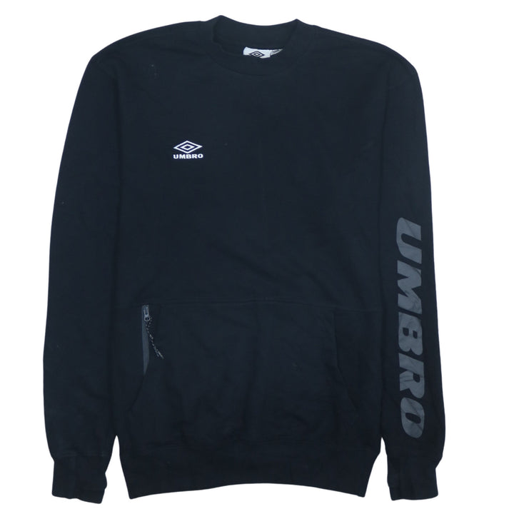 Umbro Black Sweatshirt Men's Small Embroidered Chest Logo Sleeve Print Zip Pocket Pullover
