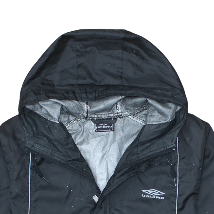 Umbro jacket, Umbro windbreaker, Umbro hooded jacket, Umbro black jacket, Umbro track jacket, Umbro full zip, Umbro small, Umbro menswear, men's Umbro coat, men's black windbreaker, black hooded jacket, black full zip jacket, lightweight jacket, polyester windbreaker, sports jacket, training jacket, football jacket, track top, hooded shell jacket, reflective piping jacket, elasticated cuffs jacket, casual outerwear, everyday jacket, festival jacket, running jacket, gym cover up, layering piece, men's size small jacket, relaxed fit jacket, 100 polyester jacket, logo jacket, printed logo jacket, classic Umbro style, football fan jacket, activewear top, athleisure jacket, outdoor jacket, walking jacket, waterproof style shell, wind resistant jacket, street casual jacket, sportswear top, zip up coat, hooded coat, trackwear, outer shell, lightweight sports coat, breathable shell, long sleeve jacket, black sports coat, branded jacket