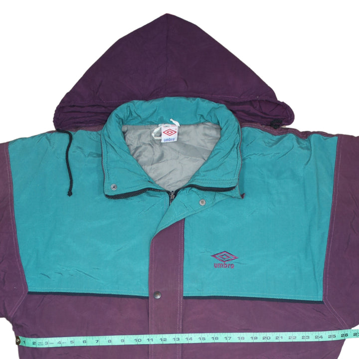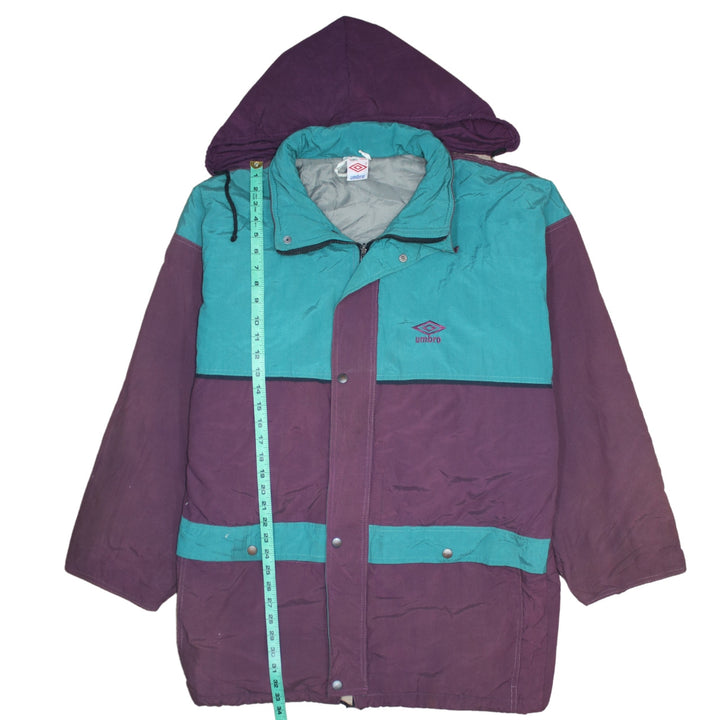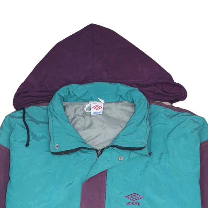 Umbro jacket, Umbro hooded jacket, Umbro windbreaker, Umbro coat, Umbro outerwear, purple Umbro jacket, teal Umbro jacket, colour block jacket, men’s Umbro jacket, men’s XLarge jacket, XL Umbro coat, hooded windbreaker, full zip jacket, snap button jacket, embroidered logo jacket, football casual jacket, terrace style jacket, padded jacket, winter coat, casual outerwear, nylon jacket, polyester jacket, oversized fit jacket, relaxed fit coat, longline jacket, drawcord hem jacket, elasticated cuffs, front pockets, snap pockets, men’s hooded coat, everyday jacket, layering jacket, lightweight outerwear, sportswear jacket, football brand jacket, classic Umbro logo, teal purple coat, vintage Umbro style, second hand Umbro jacket, pre-owned Umbro coat, colour block outerwear, men’s casual coat, winter layering piece, festival jacket, rain resistant jacket, street casual jacket, terrace wear coat, bold colour jacket, graphic colour block coat