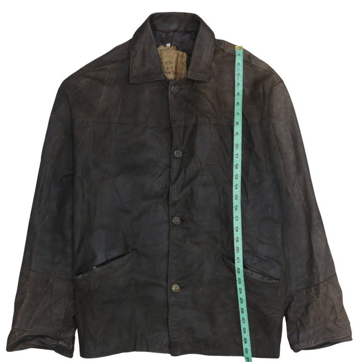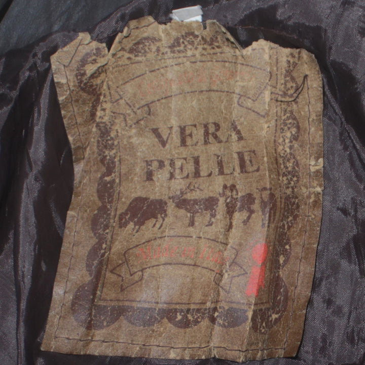 Vera Pelle Dark Brown Leather Jacket Men's XLarge Button Front Pockets Casual Outerwear Coat