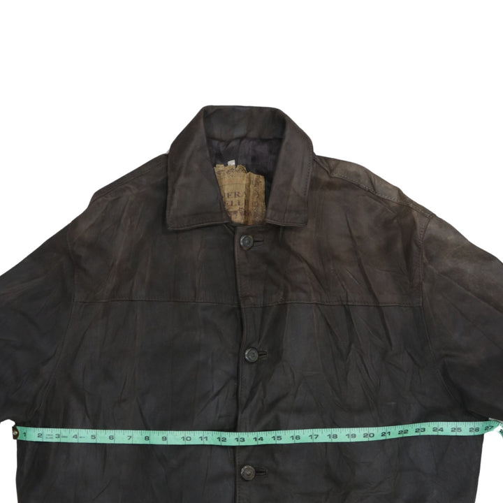 Vera Pelle leather jacket, Vera Pelle brown jacket, dark brown leather coat, men's leather jacket XLarge, mens XL leather coat, button front leather jacket, classic leather outerwear, casual leather coat, brown leather outerwear mens, relaxed fit leather jacket, oversized leather jacket, vintage leather coat, soft leather jacket, collared leather jacket, long leather jacket, slanted pocket jacket, adjustable side tab jacket, mens brown coat, mens brown outerwear, real leather jacket, mens Vera Pelle coat, brown casual jacket, smart casual leather jacket, everyday leather jacket, autumn leather coat, winter leather jacket, layering jacket, mens outerwear XLarge, brown menswear, timeless leather jacket, classic mens coat, dark brown mens jacket, button fastening coat, lined leather jacket, mens vintage leather, pre-owned leather jacket, quality leather outerwear, mens fashion jacket, minimalist leather jacket, wardrobe staple jacket, brown casual coat mens, Italian style leather jacket, oversized mens coat, mens XLarge outerwear, brown button front coat, collared outerwear jacket